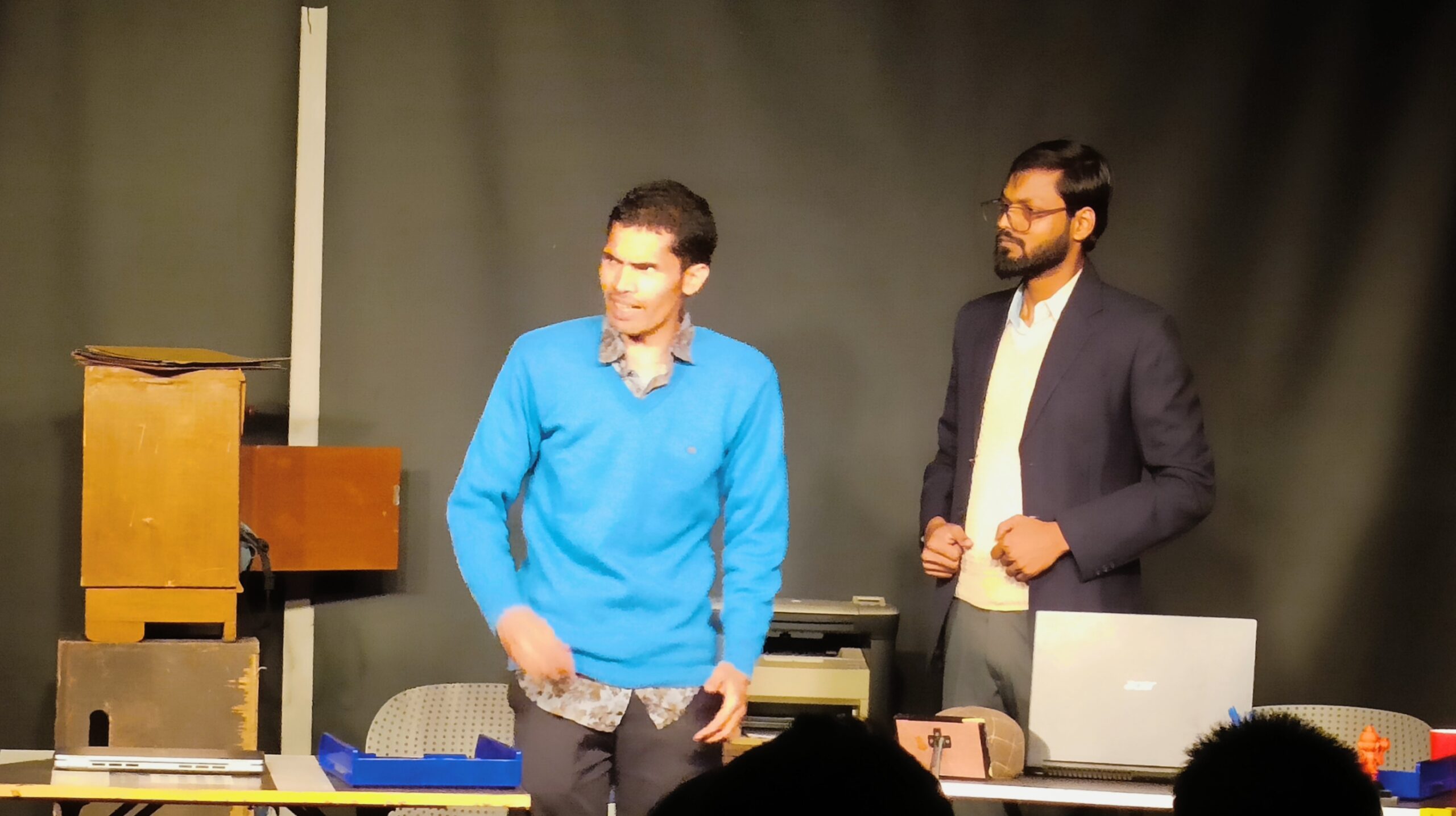 On stage, Abhishek Maurya and Kamal Bisht delivered compelling performances marked by strong chemistry and precise timing. Abhishek Maurya portrayed the inner conflict of a man balancing frustration with hope, while Kamal Bisht brought vitality and wit to his role, enriching the play’s comic rhythm. Their interaction sustained audience engagement and elevated the emotional depth of the narrative.